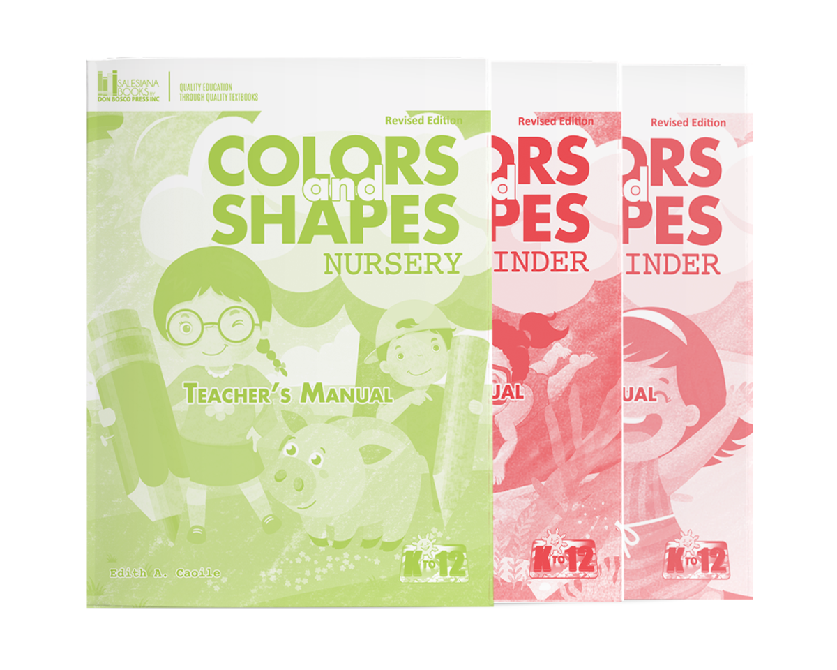 Colors and Shapes is a series of art books from Nursery to Kinder. It is purposely written to defi ne and redefi ne the artistic potentials of the learners. It is a spark that will enkindle their artistic potentials and their language and literacy.