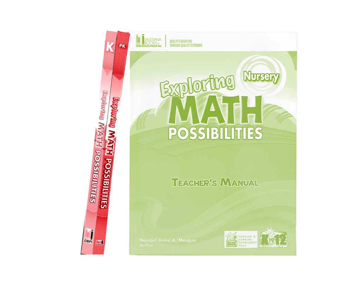 Exploring Math Possibilities is a K to 12-aligned Math series for Nursery to Kinder, covering fi ve core units and integrating both routine and nonroutine problem-solving to build strong foundational skills. It develops Higher Order Thinking Skills by encouraging learners to formulate their own problems and includes chapter tests and real-life performance tasks with rubrics to assess both content and performance standards eff ectively.