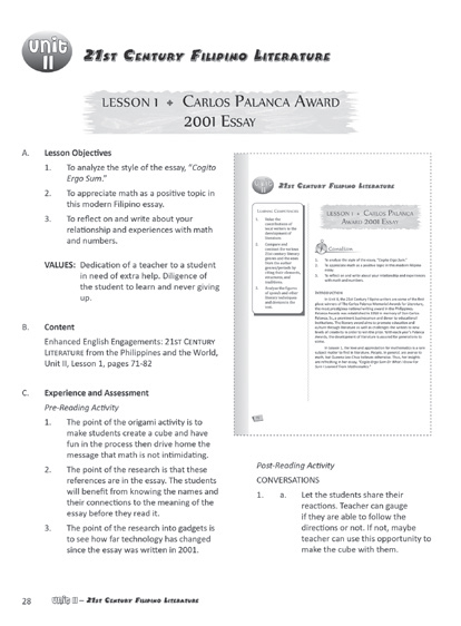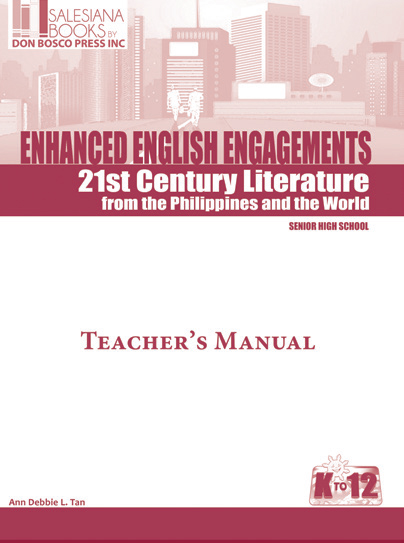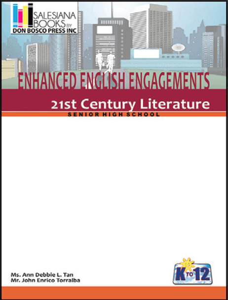 Enhanced English Engagements Series hopes to develop the four macro skills of communication namely reading, writing, speaking, and listening for Grades 11 and 12. Included in the series are Reading and Writing, Oral Communication, English for Academic Purposes and 21st Century Literature.