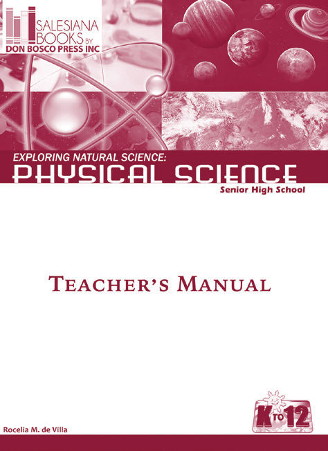 The Exploring Natural Science Series consists of two books for Grades Eleven and Twelve of Senior High School. The Physical Science Book focuses on the understanding of basic Chemistry and Physics: concepts about matter, motion, electricity, magnetism, and light. It also discusses the concepts of the evolution of the universe up to the present and how these concepts are applied in diff erent contexts aff ecting man’s daily life.