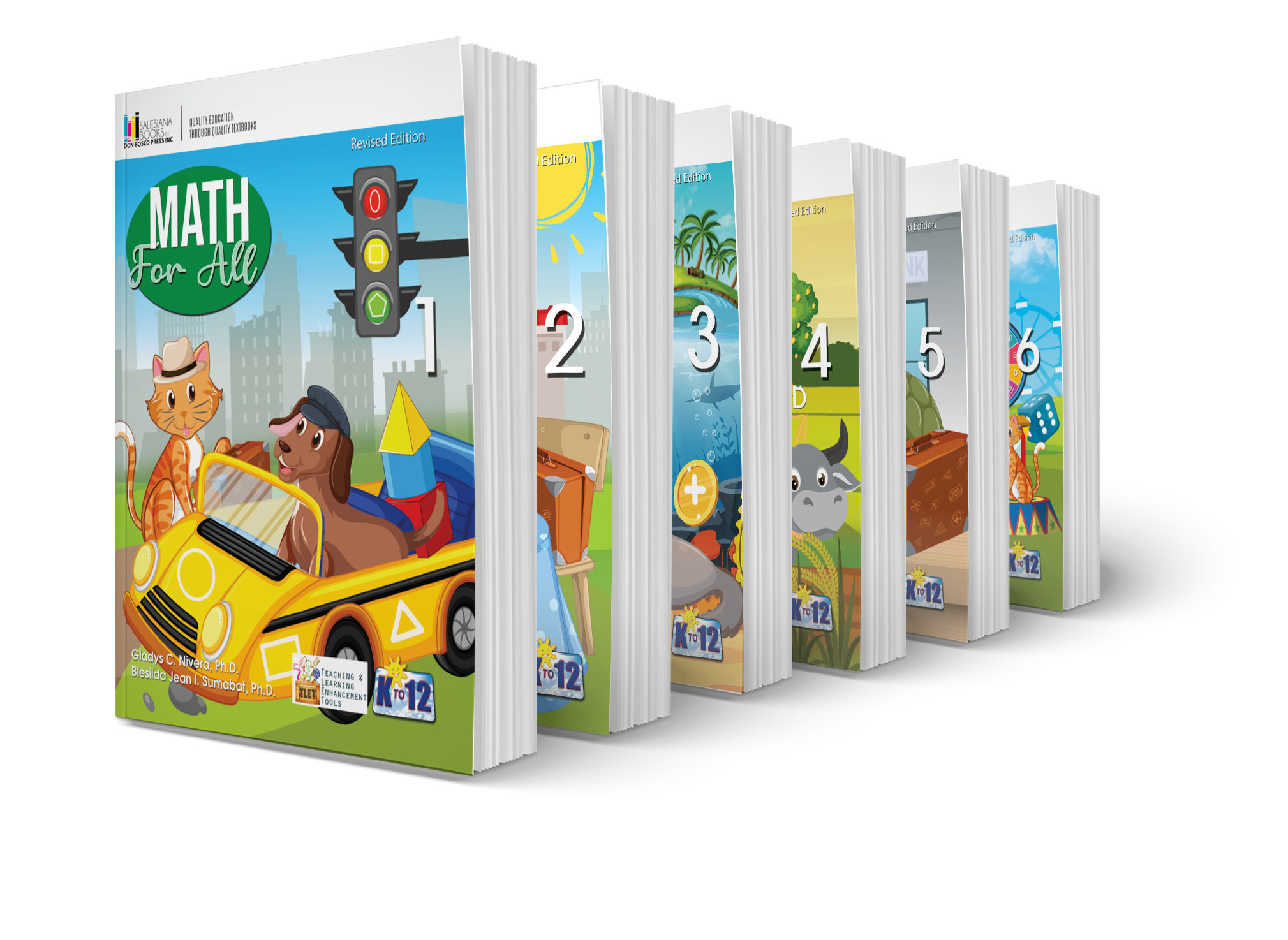 Inspired by the Singaporean model, Math for All is an activity-based preparatory and elementary mathematics series designed to address the various needs of the diff erent learners and take the K to 12 Mathematics Curriculum a step further. It’s guided by the principle that mathematics can be enjoyed and learned by all pupils by tapping into their creativity and multiple intelligences and by developing their critical thinking skills.
